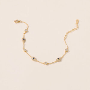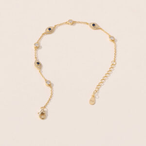 Adorned with cubic zirconia and Turkish eye charm, this piece doubles as an evil eye bracelet and gold bangle, adding a trendy, protective vibe to any outfit