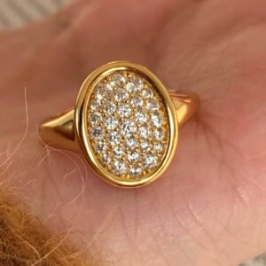 1.Elegant Party-Ready Piece: This minimalist brass signet ring is a standout in Ring Elegant Party Jewelry. Adorned with zircon and cubic zirconia, it shines as stylish gold finger rings for any celebration.