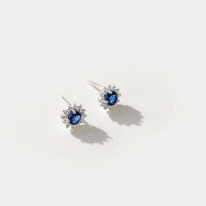 Brass Stud Earrings with Blue Crystal Cubic Zirconia
