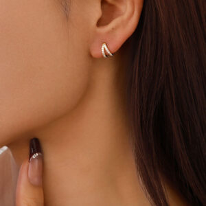 Geometric shape with zircon accents adds elegance, making these pieces a thoughtful present for brides and friends—this is the only mention of gold earrings in our intro